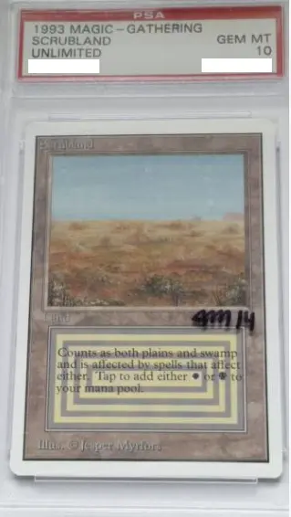 At J-Vault Capital, we understand that the strongest portfolios are built on an unshakable foundation. Today, we are profoundly honored to showcase a foundational pillar of Magic: The Gathering history: the "Scrubland" from the 1993 Unlimited Edition.